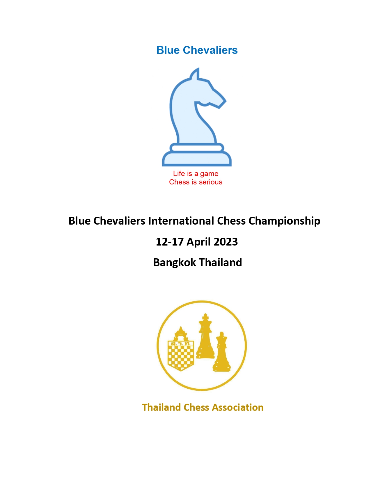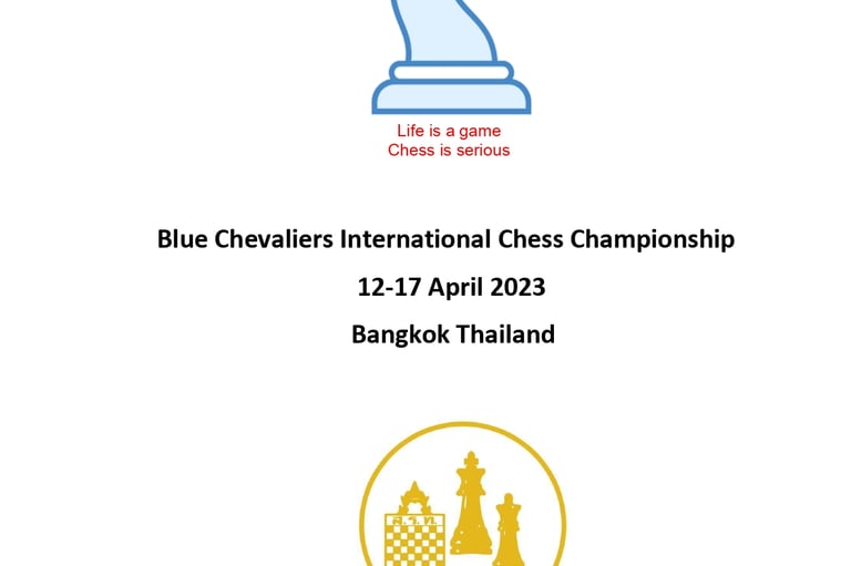 Together with our partners, the Thailand Chess Association, the Blue Chevaliers are pleased to announce our second "Blue Chevaliers International Championship" to be played alongside the Thailand national championship tournaments in Bangkok from 12-17 April 2023.”